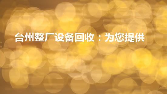 台州整厂设备回收:为您提供安全高效的设备拆除服务
