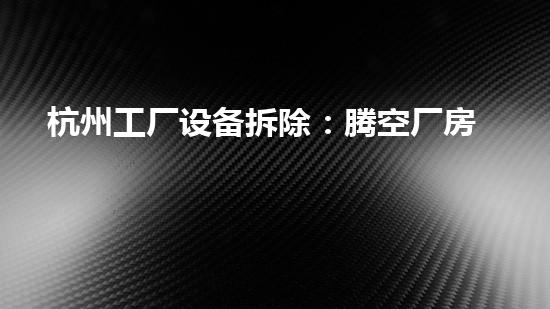 杭州工厂设备拆除:腾空厂房,助力产业转型升级
