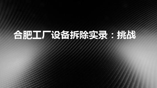 摘要:本文主要介绍了一篇以合肥工厂设备拆除实录为主题的文章。文章通过详细介绍了工厂设备拆除的挑战和风险,提供了读者背景信息,并从多个方面分析了此次拆除的过程。正文:1. 拆除计划的制定设备拆除是一个复...