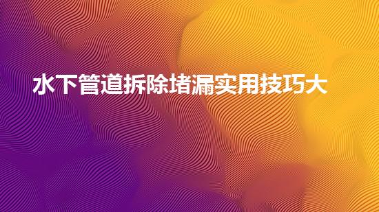 摘要:随着社会的发展,水下管道拆除堵漏技术越来越重要。本文从多个方面介绍了水下管道拆除堵漏实用技巧大揭秘,包括水下管道堵漏原因、管道堵塞的解决方案以及水下管道拆除技巧等。 正文:一、 水下管道堵漏原因...