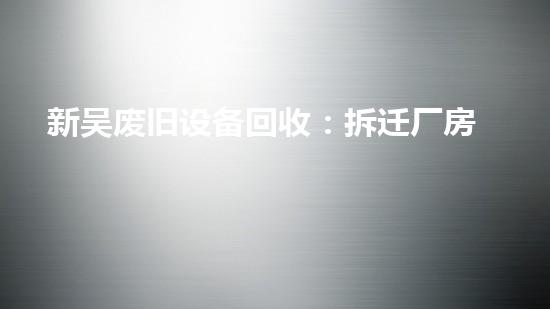 【摘要】随着现代工业技术的不断进步和人们生活水平的不断提高,大量的工业设备、厂房等设施被淘汰和废弃。而如何对这些废旧设施进行有效的回收利用成为了一个亟待解决的问题。本文将以新吴废旧设备回收,尤其是以拆...