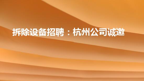 拆除设备招聘:杭州公司诚邀勇敢者