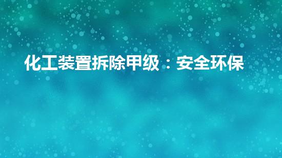 化工装置拆除甲级:安全环保实践经验总结