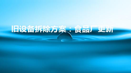 摘要:本文将介绍旧设备拆除方案:食品厂更新换代之策。在工业领域,更新换代是一项必不可少的任务。食品工业也不例外。本文将详细介绍食品厂中旧设备拆除的需求,以及如何选择合适的拆除方案。文章将介绍不同的技术...