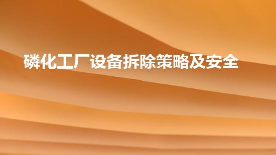 摘要:磷化工厂的设备拆除是一项涉及到工人的人身安全和环境保护的危险工作。为此,制定和实施科学的设备拆除策略及安全措施至关重要。本文从不同的角度探讨了磷化工厂设备拆除的策略及安全措施,重点介绍了巴洛仕集...