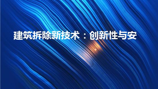 摘要:本文主要介绍了建筑拆除中的新技术:创新性与安全并举。随着现代建筑的不断发展,建筑拆除也在不断进步。针对传统拆除方法的不足,新技术不断涌现,提高了拆除效率和安全性。垂直拆除、水压切割、悬挂拆除、多...