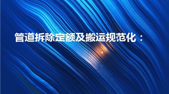 摘要:随着管道拆除的需求日益增加,管道拆除定额及搬运规范化已成为行业的重要问题。本文介绍了一种新的解决方案——一试定额搞定!通过实施管道拆除定额及搬运规范化,实现了对管道拆除过程的规范化管理,提高了效...