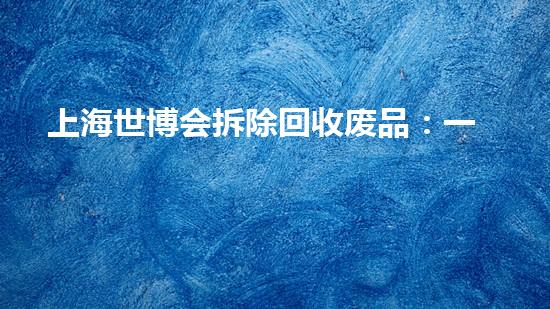 上海世博会拆除回收废品:一场绿色的再生之旅当2010年上海世博会“城市让生活更美好”的主题曲渐渐远去,那片曾汇聚全球与欢腾的5.28平方公里土地,并未随着盛落幕而沉寂。相反,一场规模空前、意义深远的“...