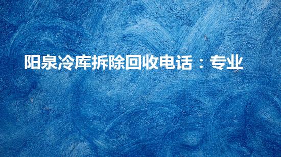 阳泉冷库拆除回收电话:专业服务让废旧冷库变废为宝