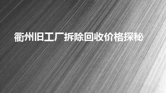 衢州旧工厂拆除回收价格探秘:几何,如何精打细算?漫步在衢州这座与现代交融的都市,我们不难发现,伴随产业升级与都市更新的加快,一些承载着旧日工业记忆的厂房正悄然历史舞台。这些庞然大物的“退役”,并非简单...