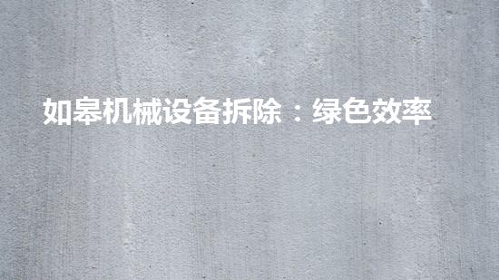 如皋机械设备拆除:绿色效率高的行业实践路径