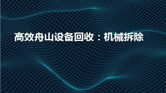 舟山是我国重要的中转站和港口城市,但在工业快速发展过程中,也产生了大量的设备报废和危废处理的问题。高效舟山设备回收:机械拆除、报废回收一站式解决方案是旨在解决这一问题的一项创新技术。本文将详细介绍该技术的具体运用和优势,希望能为读者提供有价值的信息。