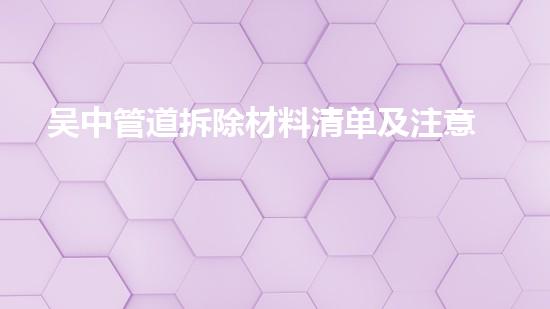 吴中管道拆除需要使用专业的材料和技术,同时还需要注意安全问题。本文将会介绍一份吴中管道拆除的清单以及注意事项,为读者提供有关该主题的详细信息。