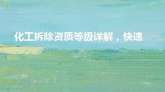 化工拆除资质等级是指进行化工设备拆除的企业在进行该项业务时应该具备的资质等级,它直接影响着企业能否在该领域能够开展业务。本文将通过详细解析化工拆除资质等级的相关内容,帮助读者快速了解资质级别及申请要点。