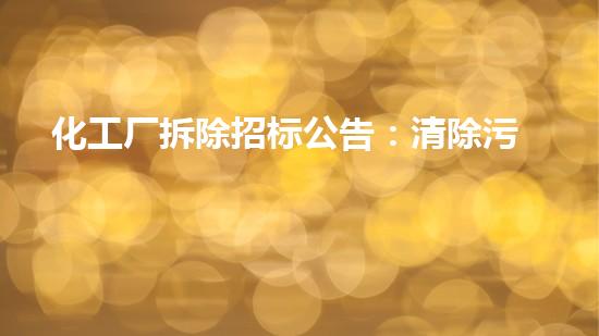 随着工业化的发展,化工产业的兴起成为推动经济发展和改善人民生活的重要行业。但是,化工产业在快速发展的同时也带来了环境污染的严重问题。为解决这一问题,化工厂拆除招标公告:清除污染,建设美好未来。本文将从多个方面对其进行深入分析和介绍。