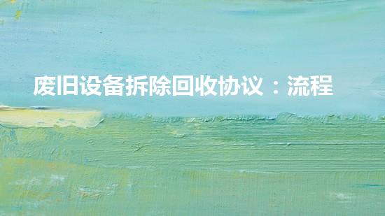 废旧设备拆除回收协议的流程主要包括:签订协议、拆卸、回收、处理和报告几个环节。签订协议是核心,其中应包括双方的义务和责任,协议的期限和费用等等。拆卸和回收过程中,需要保证安全和环保理念。拆卸过程中,应使用专业的工具和技术,防止对环境造成污染和破坏。回收过程中,应确保物资的回收利用和搬运安全,避免人员伤亡和污染。同时,回收过程中,也应该考虑对回收物资的加工或直接销售等后续处理方式。在处理过程中,危废处理应该得到充分考虑。在拆卸和回收过程中,需要记录实时数据和报告。该数据包括,安全、环保、回收量、加工方式等等。