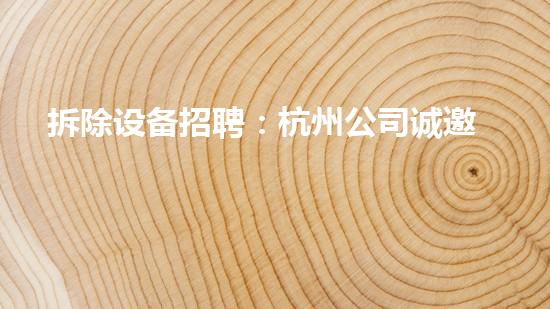 随着中国现代化进程的加速,越来越多的老厂房和工业化区域需要进行拆除。拆除设备行业因此不断壮大。本文将从多个方面介绍拆除设备招聘:杭州公司诚邀勇敢者,让读者了解拆除设备行业的现状和这家公司的招聘信息。