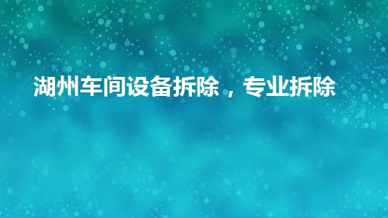 湖州车间设备拆除是一个非常专业的领域,需要有专业的拆除服务商来进行处理。本文将通过对湖州车间设备拆除的分析,详细介绍专业拆除服务商的解决方案和技术,提供大量的背景信息,以引发读者的兴趣。