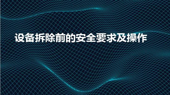 在设备拆除前,必须做好安全准备工作。首先,评估拆除区域的环境和周围的建筑物,采取措施保护周边的建筑物免受设备拆除的影响。其次,确定拆除过程中必要的防护措施,包括戴好安全帽、穿上安全鞋、手套、护目镜等必要的安全防护装备。此外,还需要制定详细的设备拆除方案,确保所有所需材料、工具和设备都准备就绪,并且同步准备相关物料和清理工具,以便完成设备拆除后进行清理和处理。
