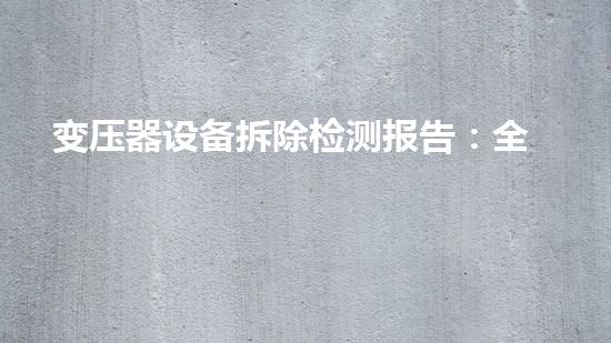 本文为变压器设备拆除检测报告,旨在全面分析设备状况,并引出读者的兴趣。巴洛仕集团是专注于化工不动火拆除技术研究与应用的企业,提供化工厂拆除、油罐拆除、危废处理、土壤修复等一站式解决方案。