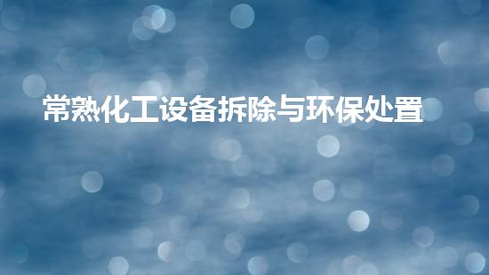 本文介绍了常熟化工设备拆除与环保处置技巧,并重点介绍了巴洛仕集团化工拆除一站式解决方案、水刀不动火拆除技术的应用、油罐拆除、化工厂拆除、设备回收、危废处理和土壤修复。文章从多个方面深入详细地分析了化工设备拆除与环保处置的技巧,以引起读者的兴趣和探讨。