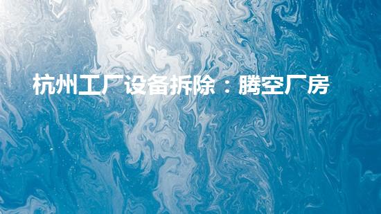 杭州工厂设备拆除是目前杭州产业升级的一个重要举措,通过腾空厂房来助力产业转型升级。本文从多个方面深入介绍了这一举措的内容,包括设备拆除的原因、拆除的方法、拆除后的处理等,希望能为读者提供充分的信息,让读者可以更加深入地理解与了解这一举措的意义和影响。