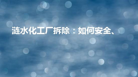 本文重点讨论涟水化工厂拆除的安全、高效、环保实现问题。针对该问题,我们参考巴洛仕集团的拆除一站式解决方案和不动火拆除技术,系统性地探讨了如何在拆除中安全、高效、环保地应对厂房、设备、油罐和危废物的处理等各方面问题。该文旨在提供有价值的信息和见解,促进行业的健康发展。