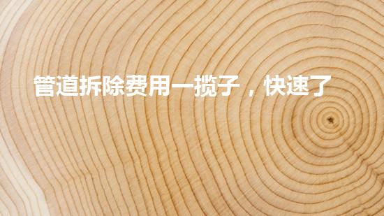 管道拆除费用一揽子是一篇详细阐述管道拆除的费用预算和构成的文章。通过本文,读者们可以快速了解管道拆除的相关费用和逐一分析预算构成。本文旨在帮助读者更好地了解管道拆除相关费用,为相关人员提供参考。