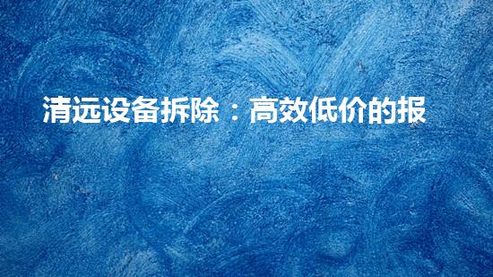 清远设备拆除是一个高效低价的报价方案,该方案提供了多种不同的拆除方式和设备回收方案,能够帮助使用公司的客户以最小的成本完成设备拆除和处理。本文将重点介绍该方案,并提供更多的背景信息和研究结果。