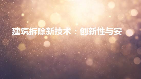 本文主要介绍了建筑拆除中的新技术:创新性与安全并举。随着现代建筑的不断发展,建筑拆除也在不断进步。针对传统拆除方法的不足,新技术不断涌现,提高了拆除效率和安全性。垂直拆除、水压切割、悬挂拆除、多层拆除等技术的应用,大大提高了建筑拆除的质量和效率。