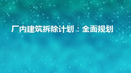 作为一个化工技术专家,厂内建筑拆除计划:全面规划,安全高效是我们工作的一个重要方面。在巴洛仕集团拆除工程中,我们采用了多种先进的技术和手段来实施拆除的各个环节,使整个工程在安全、高效、低碳、环保的基础上得到了圆满的完成。希望这篇文章可以为大家提供一些参考和帮助,希望广大专业技术人员关注并加入到这个行业当中,共同推动行业的不断发展与创新。