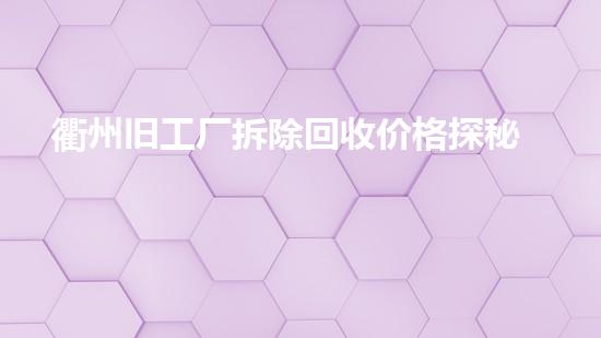 衢州旧工厂拆除回收价格探秘:几何,如何精打细算?