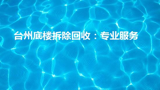 台州底楼拆除回收:专业服务如何城市更新注入绿色动能在台州这座充满活力的滨海,城市更新的步伐从未停歇。随着老旧小区改造、商业升级和基础设施建设的持续推进,大量建筑物的底楼部分面临拆除这些看似“建筑垃圾”...