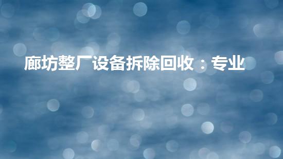 廊坊整厂设备拆除回收:专业服务企业绿色转型与资产盘活