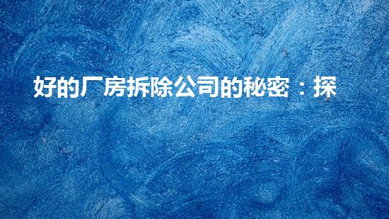 工厂拆除的重要性与挑战工厂拆除作为一个专业领域,不仅仅涉及建筑物的拆除,更关乎环境保护、资源回收以及安全管理。随着工业发展的推进,老旧工厂的拆除需求愈发显著。这些工厂可能存在安全隐患,或者不再符合现代...