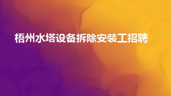 摘要:梧州水塔设备拆除安装工的招聘机会难得,本文将从多个方面详细介绍这一就业机会的背景和特点。