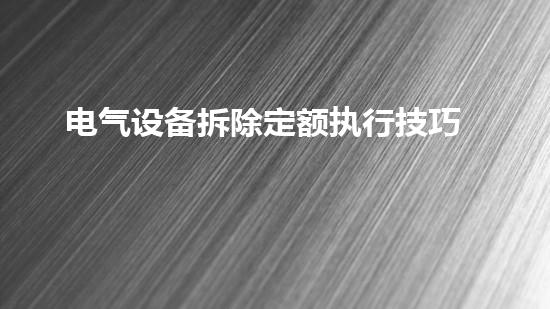 本文介绍了电气设备拆除定额的执行技巧,以及其背景信息。对于电气设备拆除,在执行定额时,需要注意一些技巧,以确保拆除安全、高效和经济。本文从多个方面深入讲解了这些技巧。