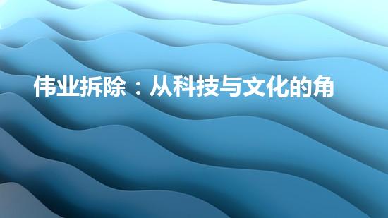 城市拆迁在城市化进程中扮演着重要的角色,一方面可以腾出更多土地用于城市建设,另一方面可以推进城市经济的发展。然而,在城市拆迁过程中,常常会涉及到科技与文化等复杂问题,需要专业人士进行深入探讨。本文以伟业拆除为例,从科技与文化的角度谈城市拆迁之路,旨在为读者提供更深入的了解。