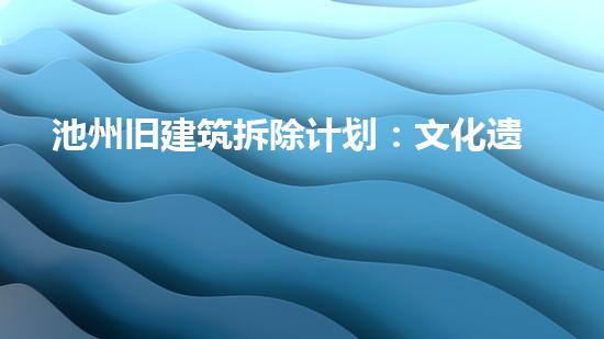 池州市计划拆除旧建筑,但这些建筑代表着中国的文化遗产,保护这些遗产面临很大的挑战。本文将从拆除行业专家的角度出发,就池州旧建筑拆除计划:文化遗产的挑战与保护进行详细的讨论,探讨如何在拆除这些建筑时保护这些宝贵的文化遗产。