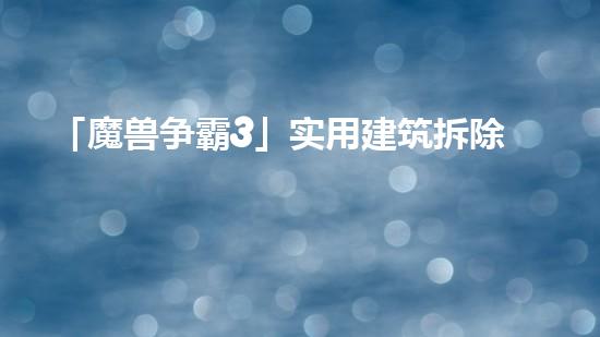 本文主要介绍「魔兽争霸3」实用建筑拆除技巧。在游戏中,我们需要清空建筑物,为新的建设腾出空间。本文将从4-6个方面详细阐述实用建筑拆除技巧,并引用其他拆除行业专家的观点和研究。