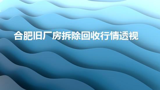 当前合肥的旧厂房回收行情,并非一个固定价格,而是一个由多重变量动态体系,主要围绕“成本”与“价值”的展开。