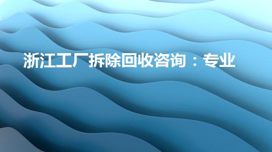 浙江工厂拆除回收咨询:专业服务助您处置资产,实现价值最大化