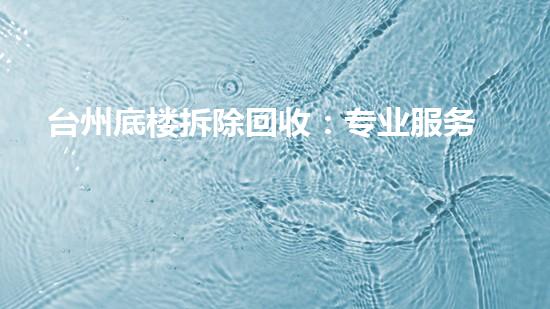 台州底楼拆除回收:专业服务如何城市更新注入绿色动能在台州这座充满活力的滨海,城市更新的步伐从未停歇。随着老旧小区改造、商业升级和基础设施建设的持续推进,大量建筑物的底楼部分面临拆除这些看似“建筑垃圾”...